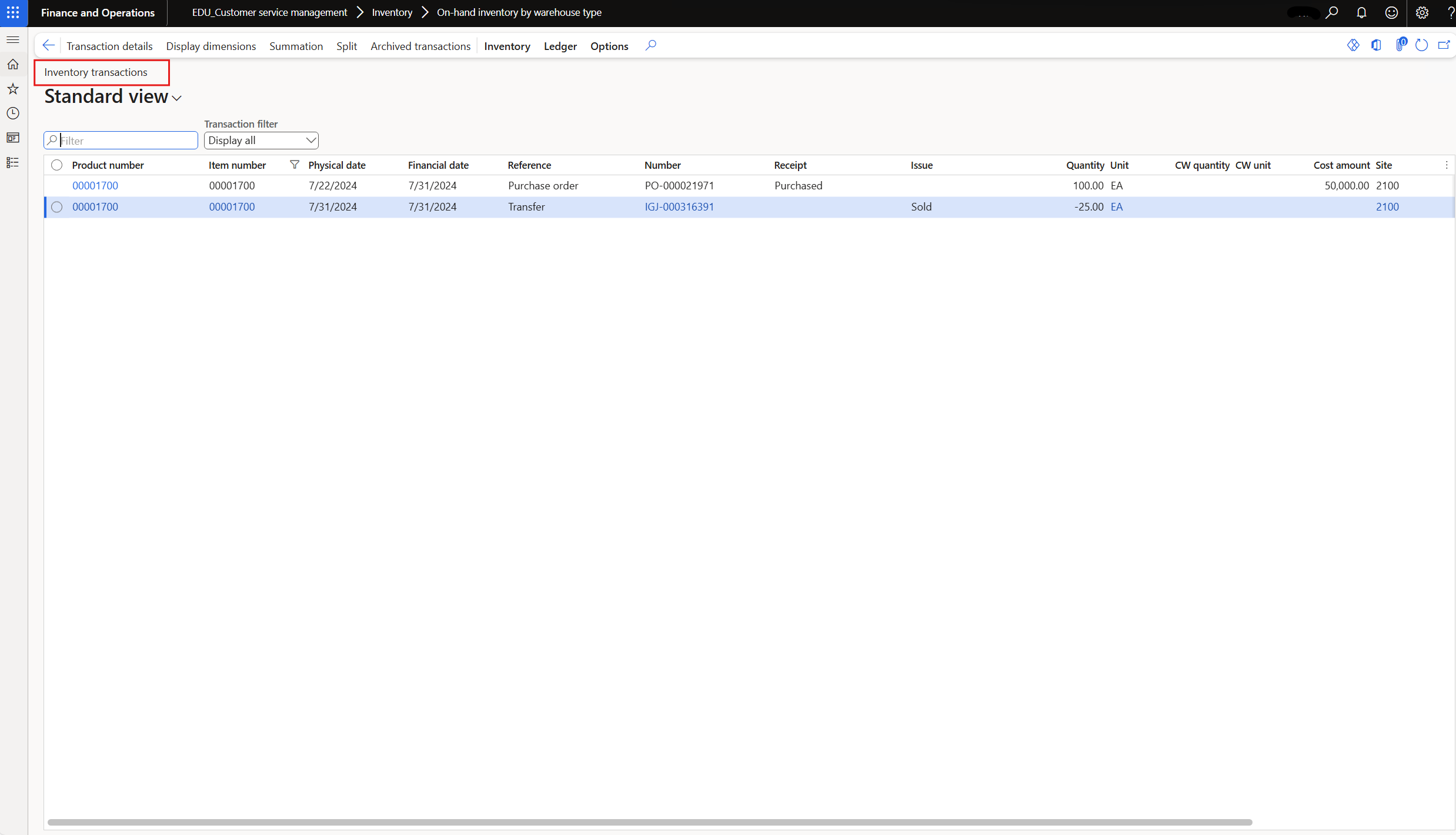 - InventDimId - InventTrans와 InventDim 테이블의 외래키 관계(간접 연결)