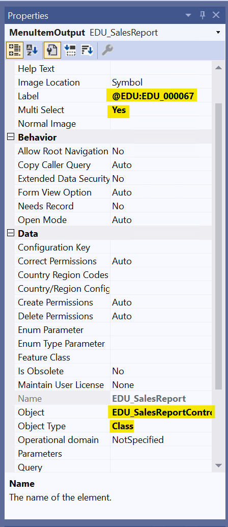 6. Output Menu Item - EDU_SalesReport