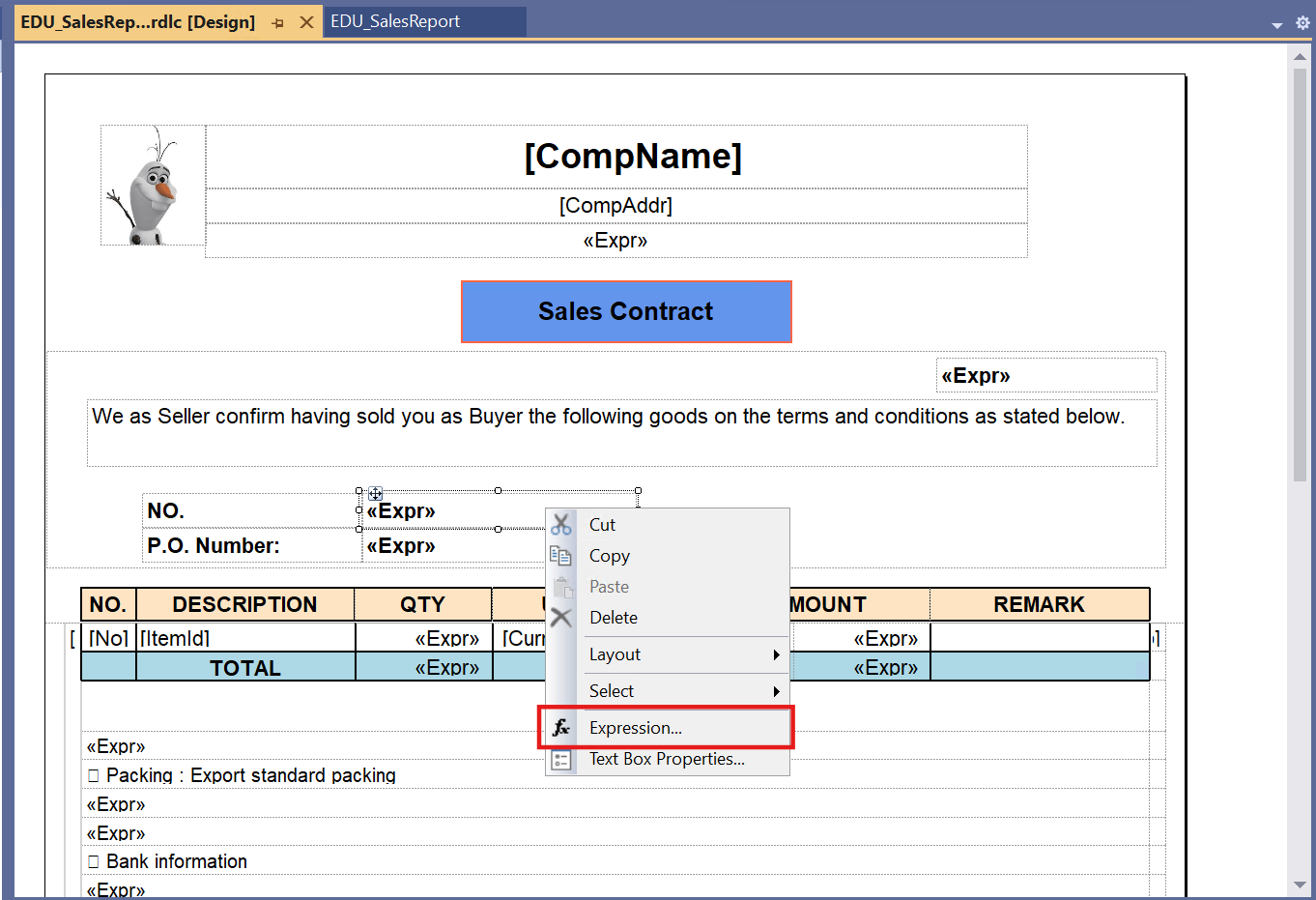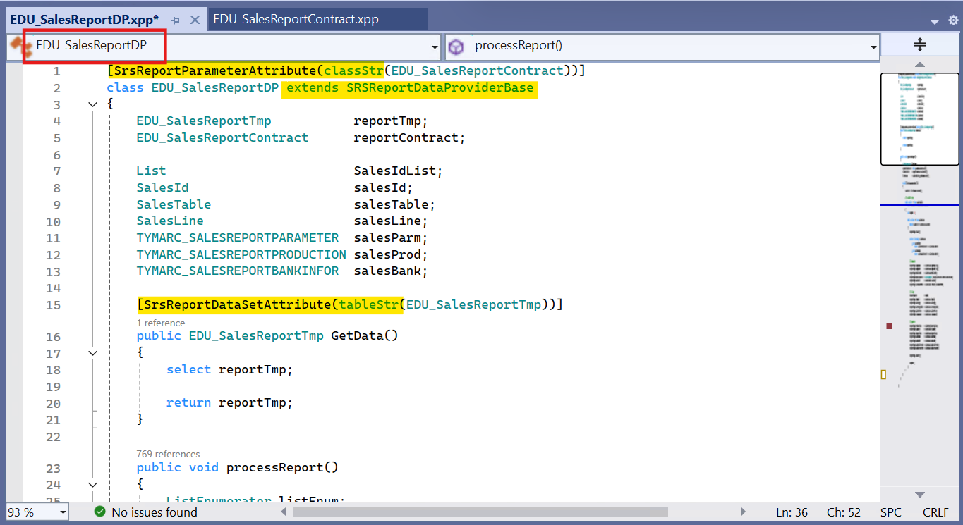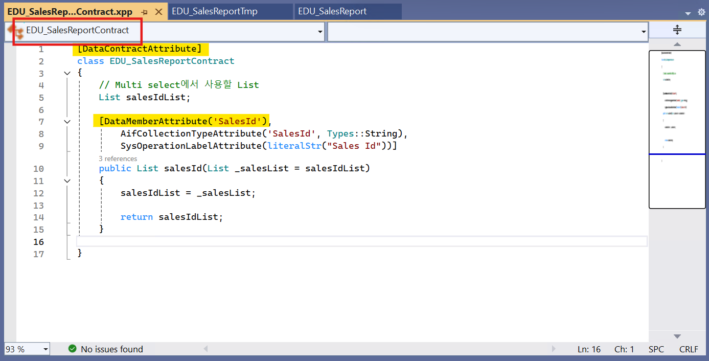1. Contract 클래스 생성 - EDU_SSRSReportContract