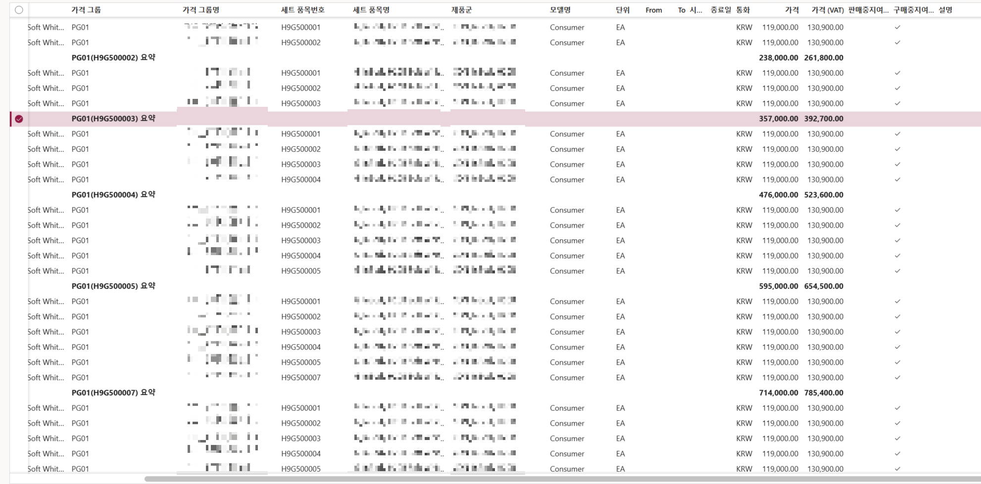 2) 조건 추가 : PriceGroup 필드에 '요약' 포함되어 있으면 레코드 Bold 설정