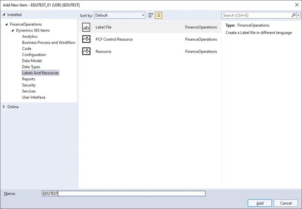 D365_VisualStudio (1)Model, Label 생성 본문