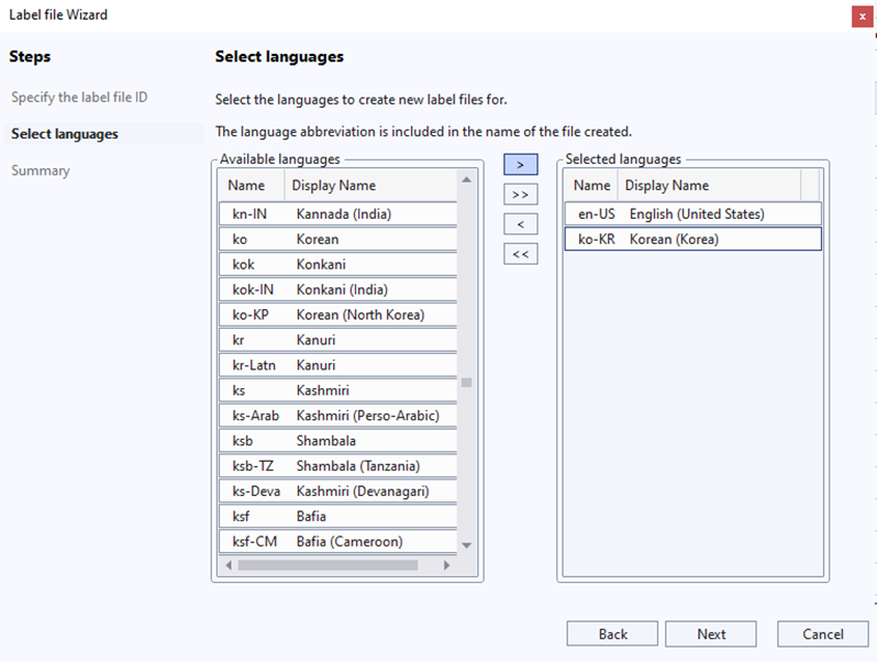 프로젝트 우클릭 > Add > New Item... > Label File 을 선택하고 Name을 입력한다.