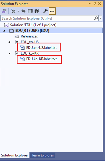》[Solution Explorer] 에서 'EDU' 프로젝트 모델이 생성된 것을 확인할 수 있다.