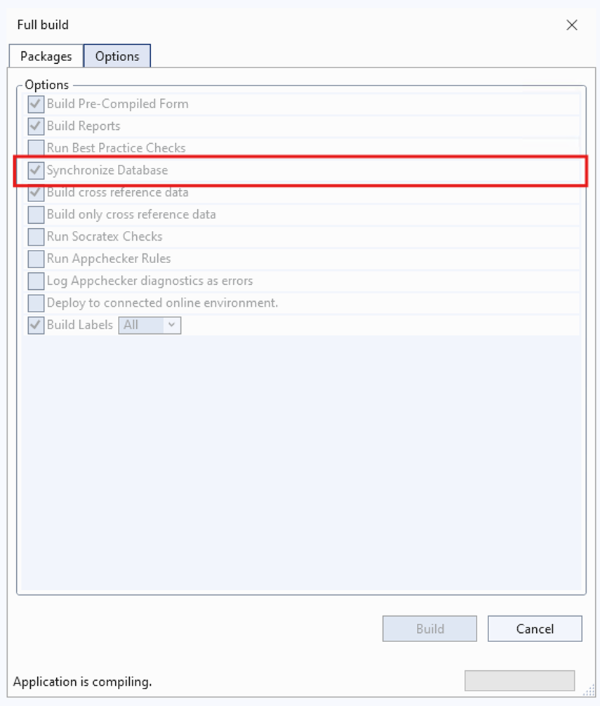 Extensions > Dynamic365 > Build Models > 옵션으로 Sync Database 선택