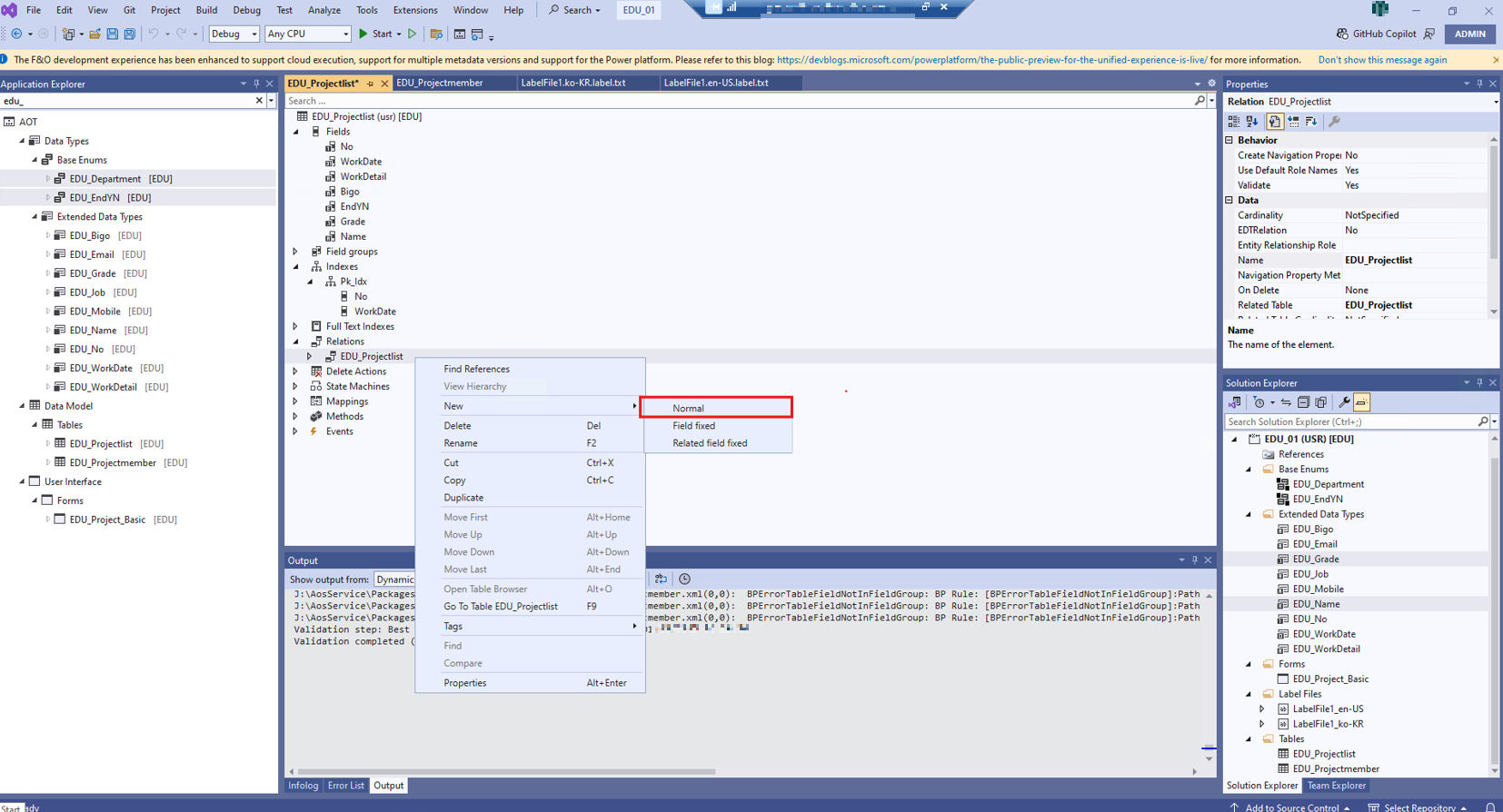 D365_VisualStudio (3)Table Relation, Form 생성, Full Build 본문